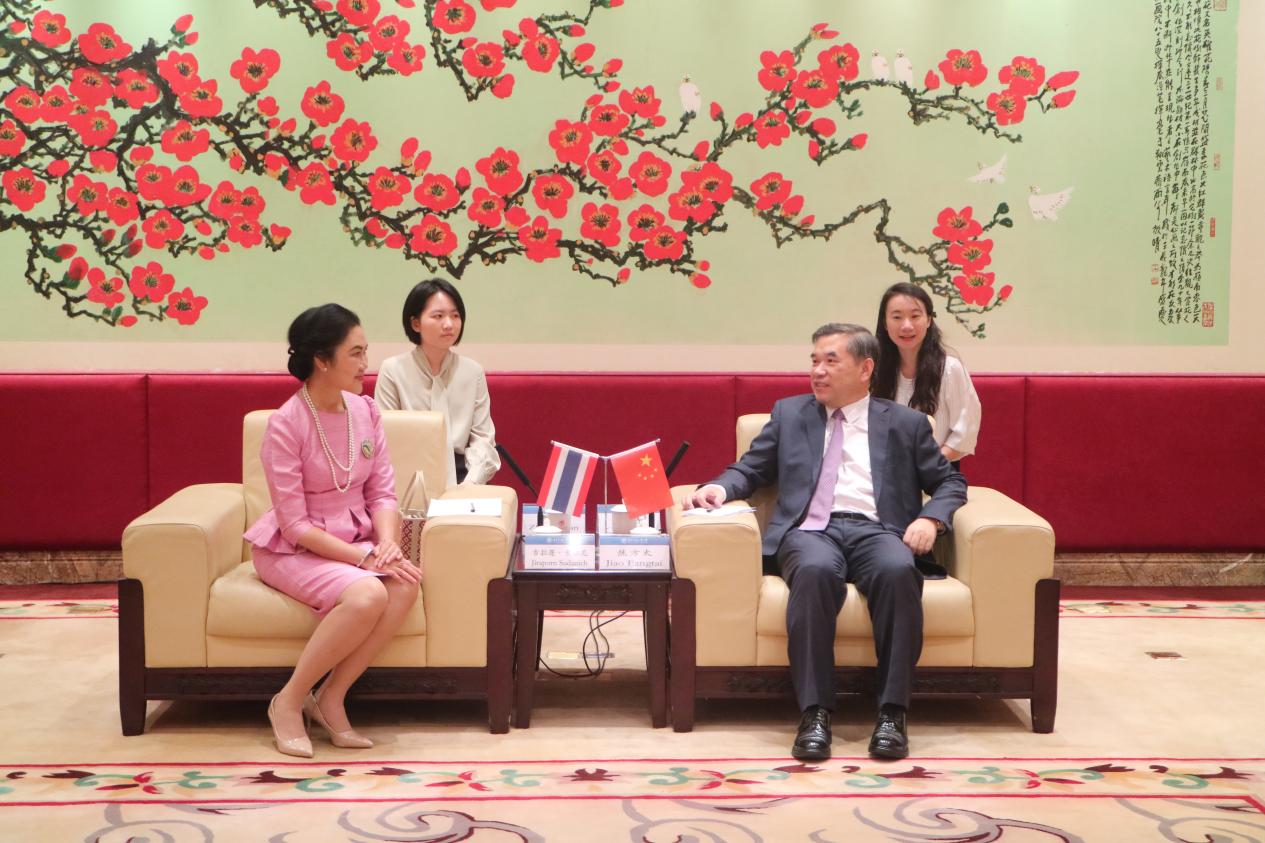 本网讯 9月14日,泰王国驻广州总领事馆总领事吉拉蓬·素妲尼一行来访,beat365副校长焦方太在白云山校区行政楼贵宾厅会见来宾。双方就学科建设、人才培养以及文化交流等事项交换意见。