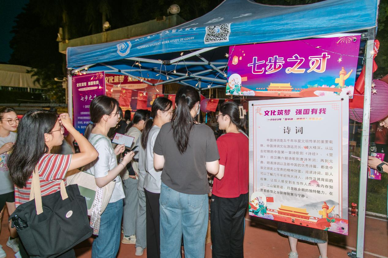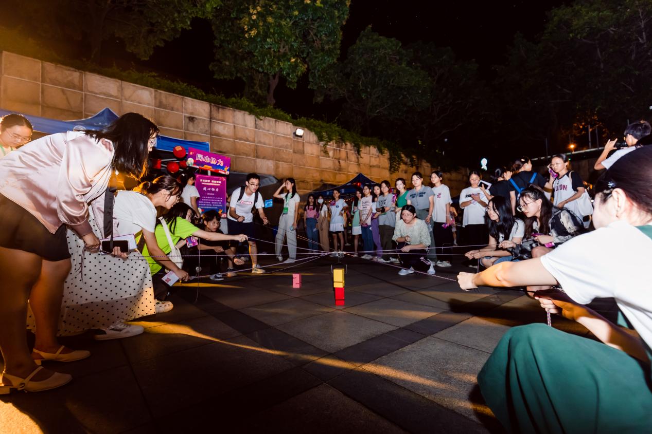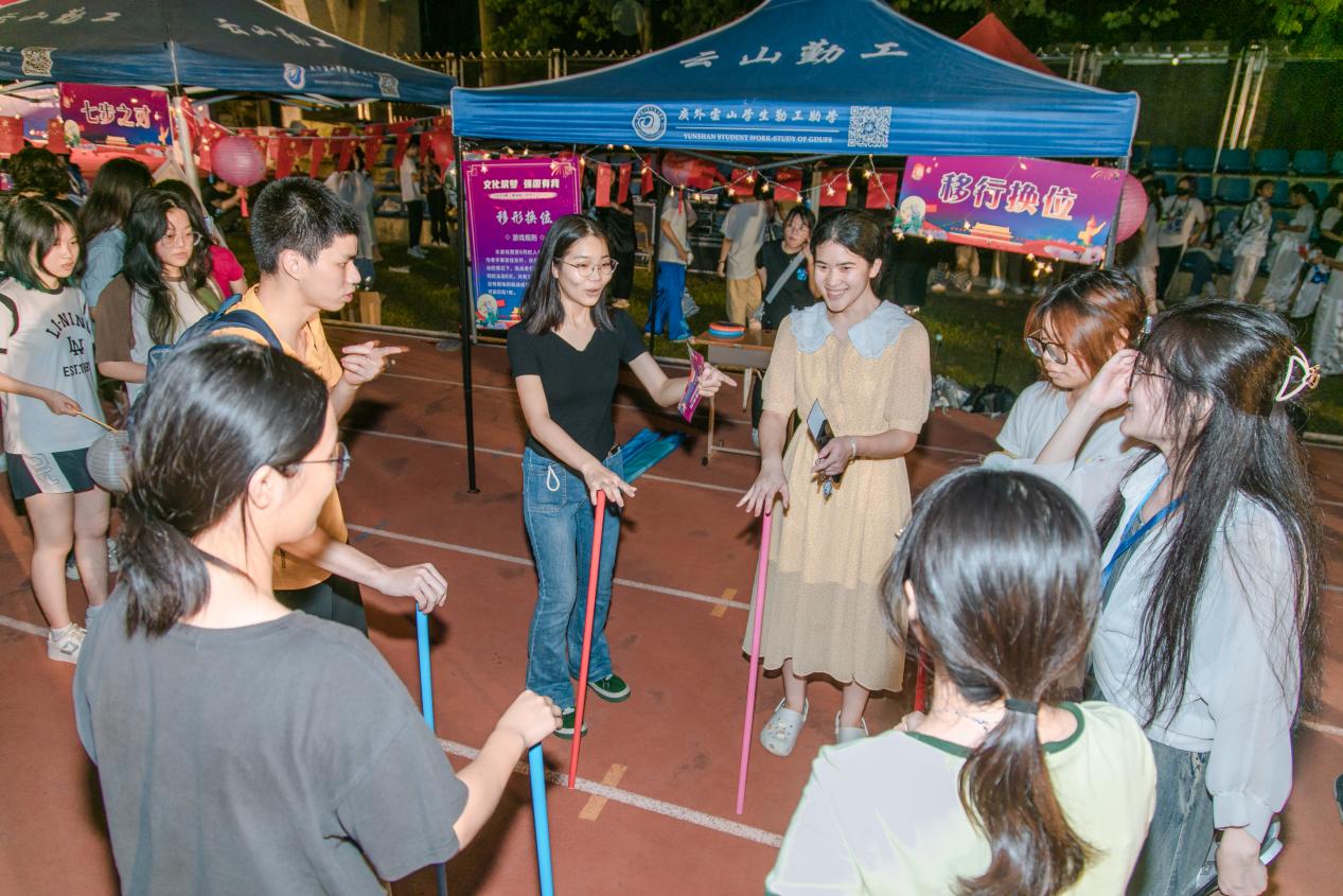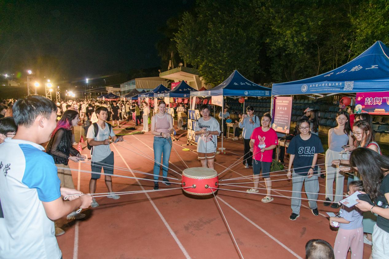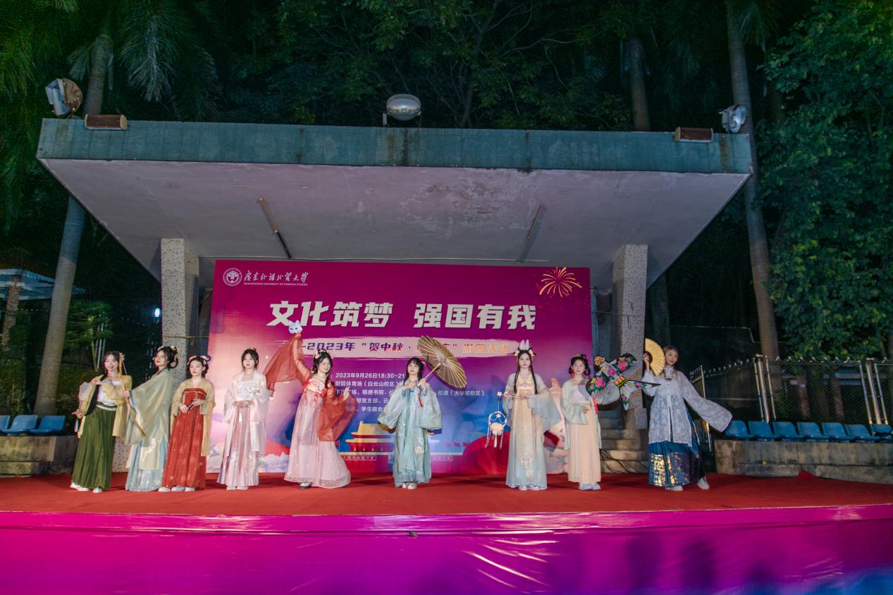 本网讯 一轮金黄月洒满团圆情,一片中国红盈满爱国心。9月26日,白云山校区、大学城校区和知识城校区同步举行以“文化筑梦,强国有我”为主题的“贺中秋·迎国庆”游园活动,三校区八千余人参加活动。活动设置传统文化体验、岭南文化主题展览及趣味游戏活动、学生展演等多种内容,融合书法、诗歌、汉服、绳结、灯笼、扇子等中华优秀传统文化元素,打造了一场有趣又有料的精彩文化盛宴。