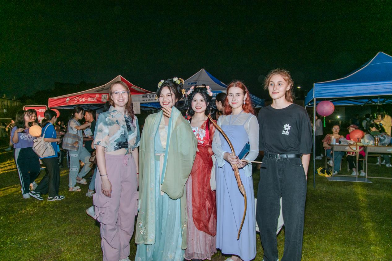 参与活动的学生纷纷表示有感于浓厚的文化氛围。商务英语学院林同学表示:“今人不见古时月,今月曾经照古人”,这次游园会让我切实感受到了传统节日特有氛围和中华优秀传统文化的源远流长、博大精深。金融学院管同学表示,非常高兴参与中秋国庆游园会,现场的氛围比想象中更热烈。灯谜区内挂满了纸糊的灯笼和小彩灯,学子穿着汉服、提着灯笼游园猜灯谜的场景让人产生时空交错感,仿佛穿越回到了古时上元灯节。高级翻译学院研究生陈同学表示,刚走进游园会场地,瞬间就被张灯结彩的景象以及舞台表演者美妙的歌声吸引,真正感受到了中华优秀传统文化的魅力。来自俄罗斯的留学生阿利娅谈到,中秋游园活动现场非常热闹,装饰也很有“中国味道”,舞台表演也很有中国特色,让她近距离感受了中国传统文化。