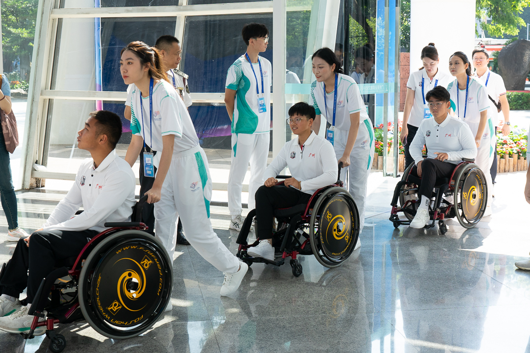 她们分布在广州体育文化博物馆外场及内场,为残疾人运动员、现场嘉宾提供帮助引导。帮助残疾人运动员克服通行困难,协助残疾人运动员出入仪式现场并照顾他们在活动期间的需求。