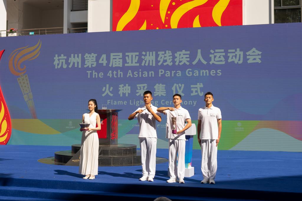 杭州第4届亚洲残疾人运动会火种采集仪式由广东省副省长林涛主持,中国残联主席程凯宣布火种采集开始。采火使者引燃采火棒后,广东省委常委、广州市委书记郭永航接过火种,交给浙江省委副书记、杭州市委书记、杭州第4届亚残组委副主席刘捷,刘捷展示火种并点燃火种盒。