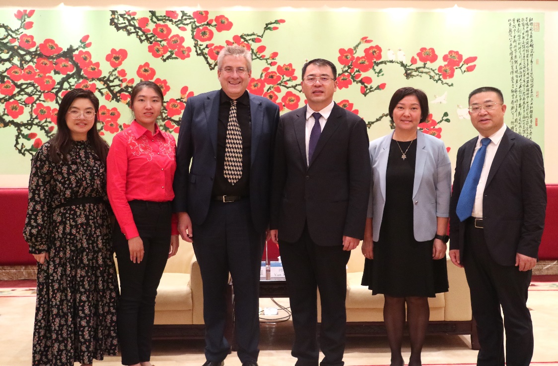 本网讯 10月19日下午,荷兰威登堡应用科技大学校长Peter Birdsall来访,beat365校长闫相斌在白云山校区行政楼贵宾厅会见来宾,双方就加强人才培养工作和深化友好合作关系等交换意见。
