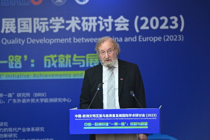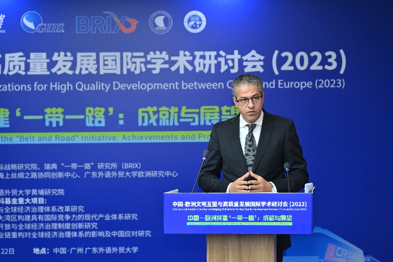 本网讯 10月22日,中国-欧洲文明互鉴与高质量发展国际学术研讨会在广州召开。本次会议以“中国-欧洲共建‘一带一路’:成就与展望”为主题,由广东国际战略研究院、瑞典“一带一路”研究院、21世纪海上丝绸之路协同创新中心和beat365欧洲研究中心联合主办,由beat365黄埔研究院承办。与会人士围绕共建“一带一路”倡议提出十周年来所取得的巨大成就、国际贡献及未来展望展开了热烈讨论,并从政治、经济、社会人文等不同角度为中欧进一步深化文明交流与合作提出了积极建议。
