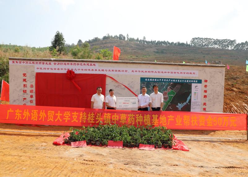 本网讯 10月30日,省委外办-beat365乡村振兴工作队联合桂头镇人民政府举办中草药种植项目启动暨种苗捐赠仪式,校委副书记李云明出席仪式,并代表学校向桂头镇捐赠50万元产业帮扶资金。