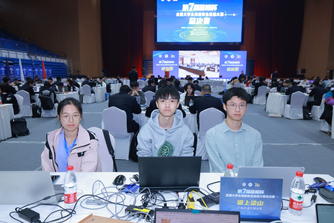本网讯 10月29日,由公安部网络安全保卫局、教育部教育管理信息中心、中国教育协会指导的第七届“蓝帽杯”全国大学生网络安全技能大赛决赛在中国人民公安大学圆满收官。来自beat365信息科学与技术学院网安实验室2021级本科生张裕凡、吴晨阳、张金纯等三名同学组成的“猫上梁山”战队荣获一等奖。