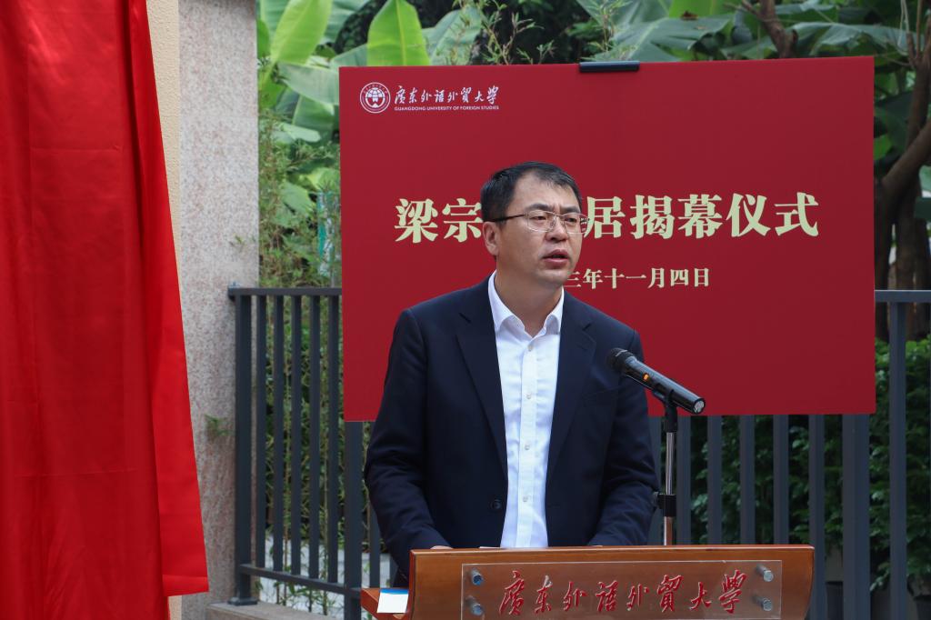 闫相斌在致辞中表示,在梁宗岱先生诞辰120周年之际,学校修复了位于云溪路10号的其曾经住过的旧居,为我们纪念梁宗岱先生增添了新的载体。纪念先贤,缅怀前辈,我们要继往开来、赓续精神,在历史传承中汲取前进力量;要踔厉奋发、争创一流,在时代征程中承担光荣使命。始终牢记为党育人、为国育才初心使命,砥砺前行,接续奋斗,不断增强培养拔尖创新人才的责任感、高质量发展的紧迫感、服务国家战略的使命感,加快推进国际化特色鲜明的高水平大学建设,为建设教育强国、文化强国作出新贡献。