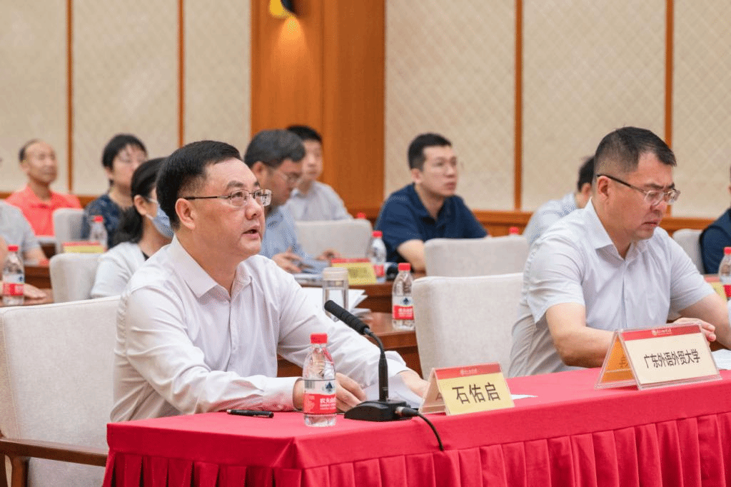 石佑启对出席会议的各位领导、专家表示欢迎和感谢,并简要介绍学校的基本情况及近年来在本科教育教学方面的特色亮点和成效成果。他指出,在学校爬坡过坎、奋力攻坚、全力谋划新发展的重要节点,审核评估各位专家为学校事业高质量发展“问诊把脉”,对学校建设发展十分重要且意义深远。学校将以审核评估为契机,持续提升学校整体办学水平,为建成国际化特色鲜明的高水平大学打下坚实基础。