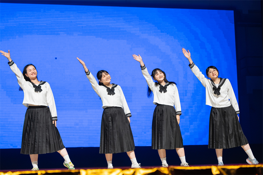 在满荧幕下夏荷微漾中,六名身穿月白舞衣、手拿三角笠帽的越南留学生率先登场,带来一曲传统的越南舞蹈,用轻柔的舞姿、恬淡的笑容向世界道《你好越南》。伴随动感的二次元音乐,带着富有律动的舞姿,日本留学生将极富日本现代元素的宅舞呈现在大家眼前,惹得现场观众连连欢呼。