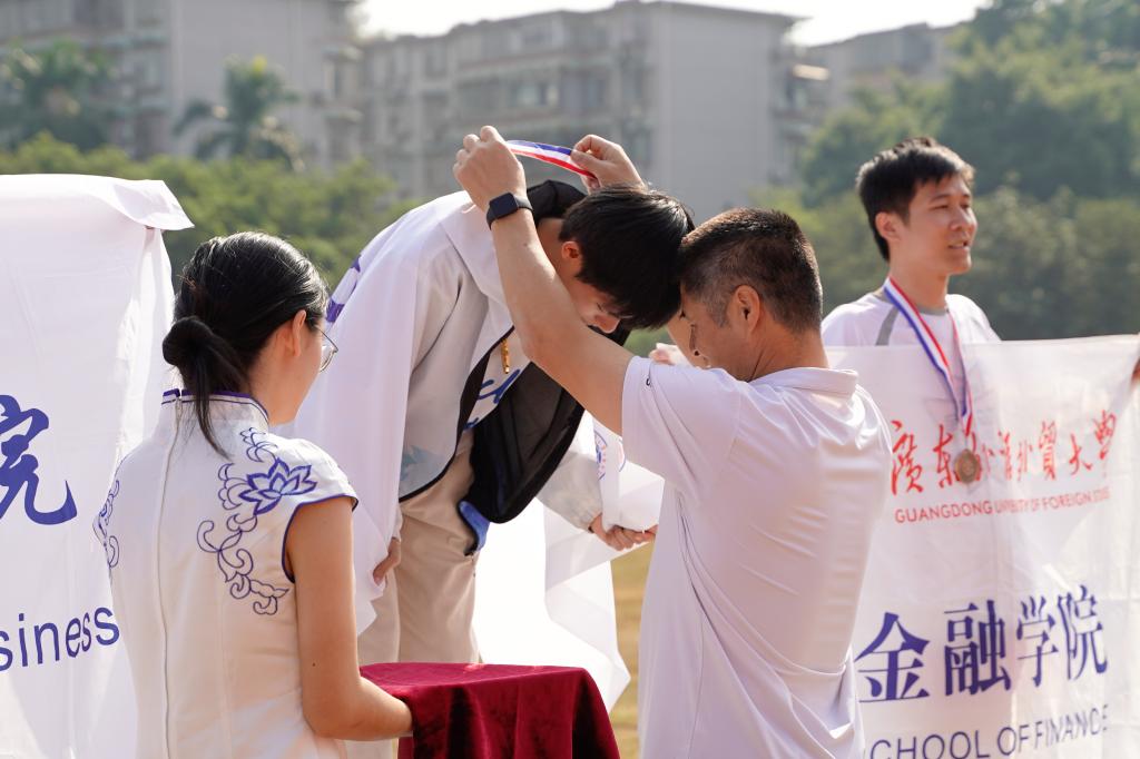 体育部副主任黄超群主持闭幕式。据悉,本次校运会共设置34个竞赛项目,共有来自56个单位的900余名运动员、教练员参与其中。商学院刘同学激动地说道:“见证了商学院在校运会上摘得团体总分桂冠,我感到无比的激动与自豪。团体优异成绩的获得离不开商学院田径队日复一日的训练,也是商学院的学子一步一步拼搏而来的,深深感受到了商学院燃烧的‘团魂’。”来自金融学院的欧阳同学表示,他在本次比赛中赛出了成果,更突破了自我。在本次比赛中打破男子素质全能校运会纪录的他,表示将继续努力,让体育精神成为照亮人生的力量。