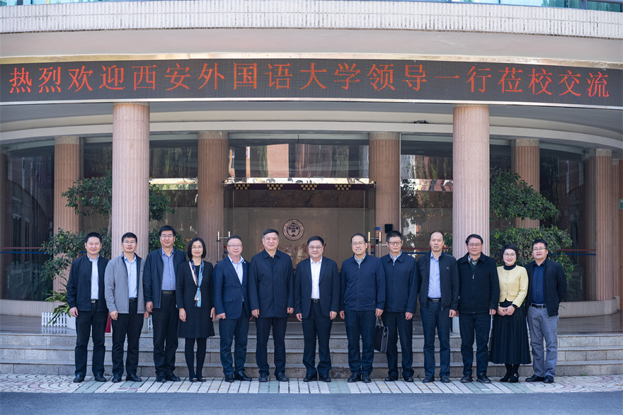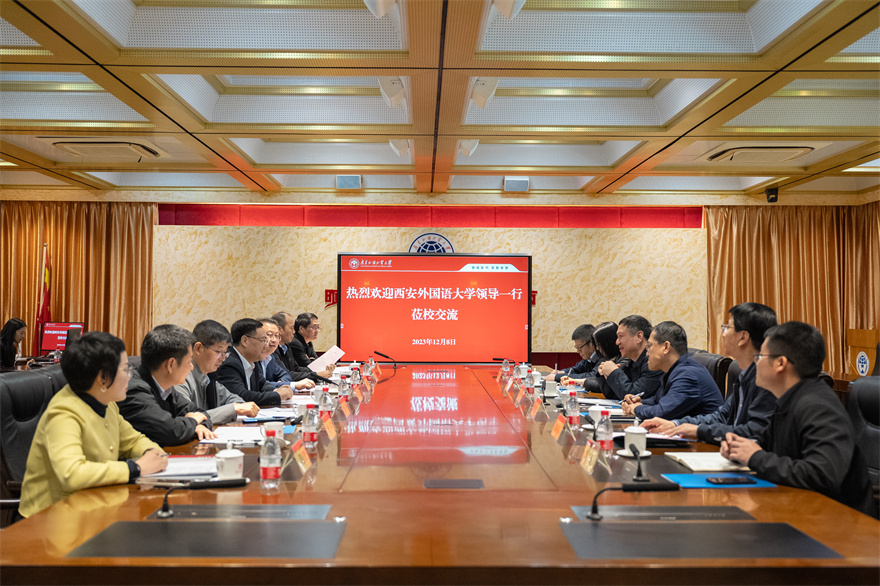 本网讯 12月8日上午,西安外国语大学党委书记白黎率队来beat365交流,beat365党委书记石佑启在白云山校区行政楼第一会议室与西安外国语大学一行座谈交流。