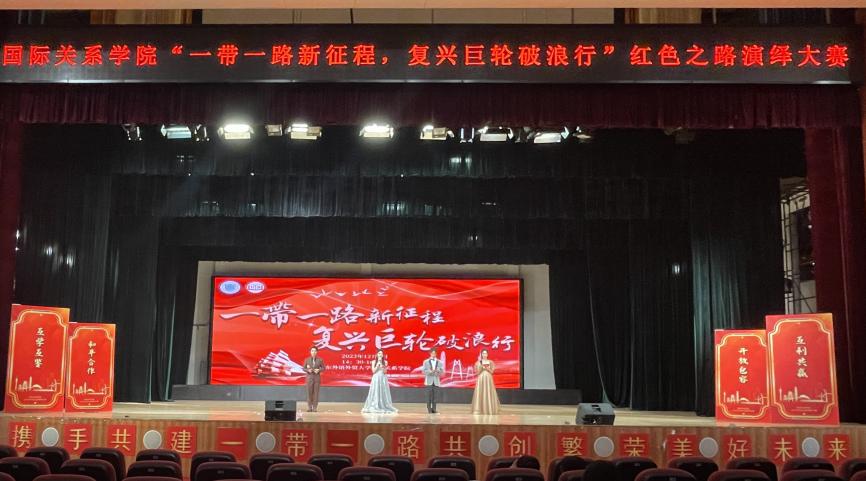 本网讯 12月2日,国关学院在大学城校区大会堂举行2023年“一带一路新征程,复兴巨轮破浪行”红色之路演绎大赛,本活动为红色文化节的系列活动,也是学校青年理论学习探新路的品牌活动之一。组织部、宣传部等单位负责人,国关学院领导及学生代表等参加活动。