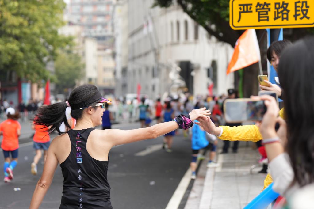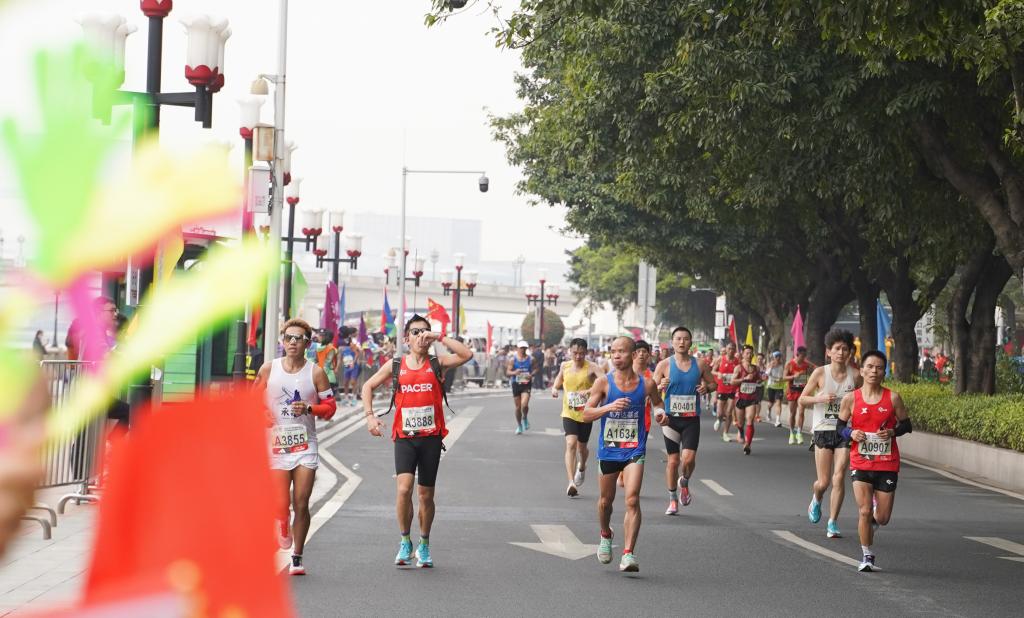 “嘭!”12月10日7时30分,第十届广州马拉松鸣枪开跑。十届历程,广州马拉松(简称“广马”)已成为国际知名的体育盛事。珠江沿岸,伴随着广州美景和热情的加油呐喊声,3万多跑者有如群马脱缰奔腾而出,气势如虹。被运动氛围笼罩的广州,在暖阳下绽放出别样风采。现场氛围十分热烈,奥运冠军郭晶晶到场为选手们加油鼓劲,选手们各种“显眼包”的造型更是点燃全场:齐天大圣、烟囱哥、“包租婆”……