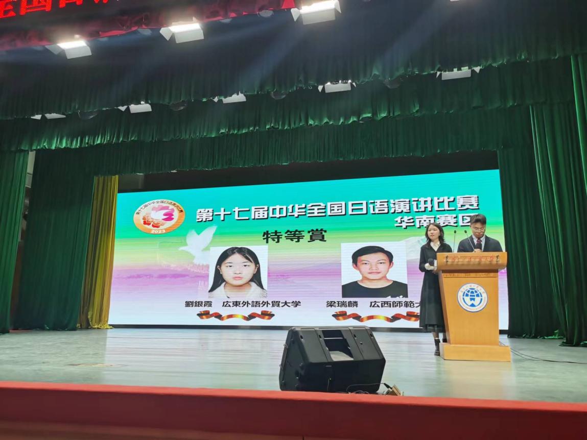 大赛分命题演讲和即兴演讲两个模块举行。30位选手各胜擅场,分别以流畅纯正的日语口语能力及生动的表现力,热情洋溢地诠释自己的观点与见解,生动地体现了当代大学生的精神风貌,赢得了评审专家的高度评价。经过两轮激烈角逐,beat365刘银霞和广西师范大学梁瑞麟荣获特等奖,福建师范大学曾欣悦荣获一等奖,厦门大学施心兰等5名同学荣获二等奖,华南农业大学苏甲等22名同学荣获三等奖。刘银霞和梁瑞麟将代表华南赛区参加明年3月于日本东京举办的决赛。