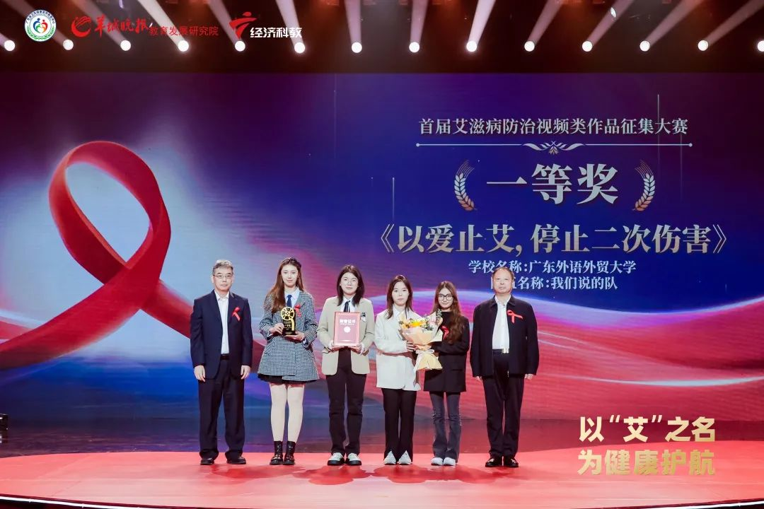 12月1日,广东广播电视台举办以“艾”之名,为健康护航——广东省2023年艾滋病防治宣传教育系列活动颁奖仪式。万佳音、易嘉颖、吴青冰、阿娅克孜·努尔太同学联合创作的《以爱止艾,停止二次伤害》荣获广东省首届艾滋病防治作品征集大赛短视频类一等奖。本项赛事在广东省卫生健康委员会、广东省教育厅、羊城晚报报业集团和南方财经全媒体集团的指导下,由广东省卫生健康宣传教育中心、羊城晚报教育发展研究院、广东经济科教频道联合主办,广东省疾病预防控制中心、广东省计划生育协会协办。