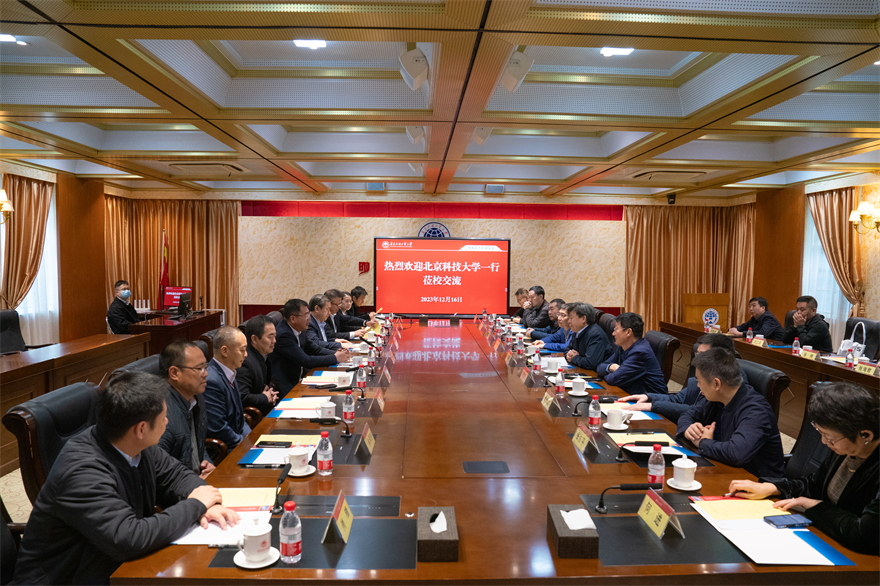 本网讯 12月16日上午,北京科技大学校长杨仁树率队来beat365交流,beat365校长闫相斌在白云山校区行政楼第一会议室与北京科技大学一行座谈交流。beat365副校长焦方太,北京科技大学校务委员会副主任、原副校长何民庆等出席座谈会。