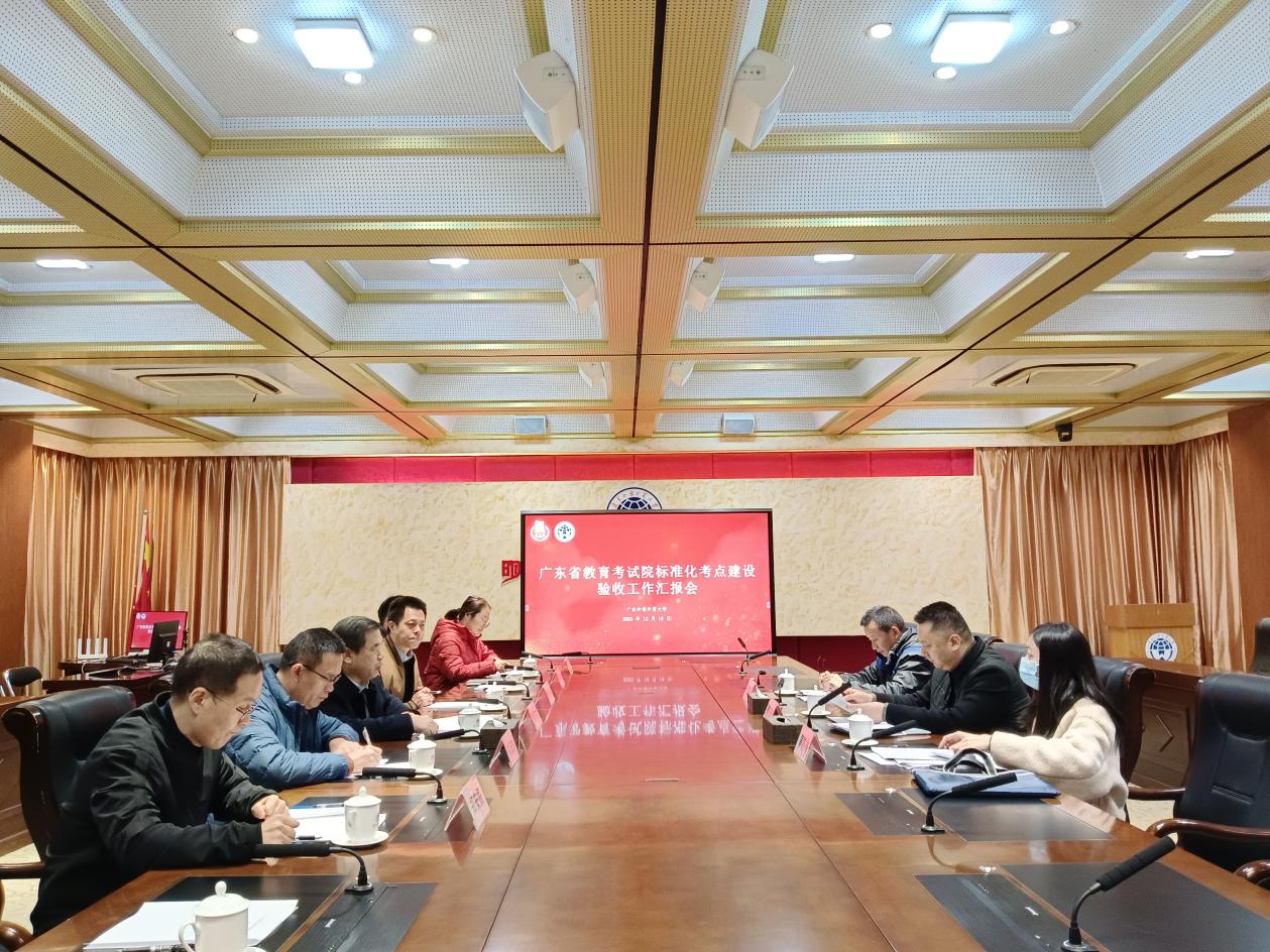 本网讯 为全面检查各高校考点国家教育考试标准化考点建设情况,推动标准化考点建设如期完成,广东省教育考试院于近日派出验收组赴全省各高校考点实地开展验收工作。12月19日上午,广东省教育考试院社会考试与考试评价处副处长周志雄等验收组领导一行到beat365进行检查。beat365在白云山校区行政楼第一会议室举行验收工作汇报会,副校长焦方太、考试中心、保卫部、现代技术教育中心等相关人员参加。