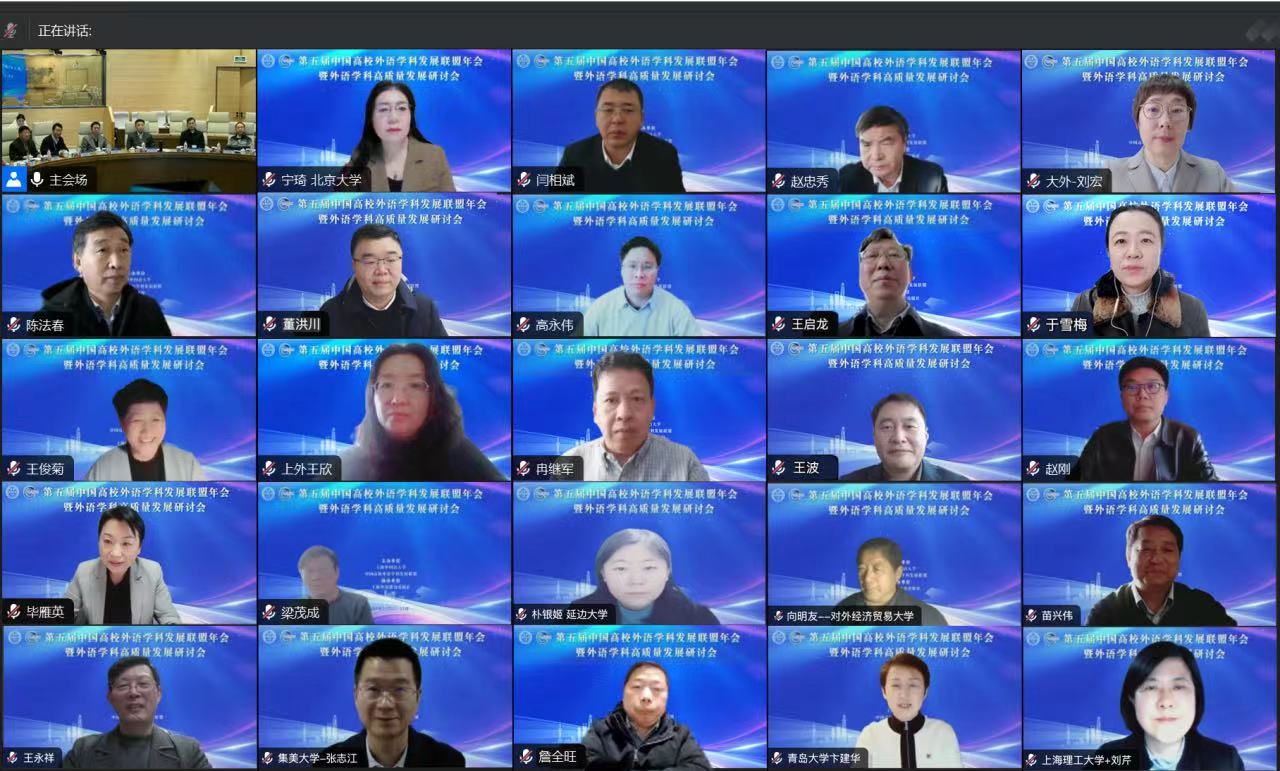 据悉,中国高校外语学科发展联盟由全国227所具备外国语言文学优势学科的高校构成,于2018年在上海成立,下设6个专门委员会,旨在搭建外语学科交流平台,建设高等外语教育资源共享与协同发展的学术共同体。本届论坛在上海外国语大学召开,会议围绕“教育强国建设背景下的外语学科高质量发展”主题,共设9场主旨发言,4个分论坛。近百所知名院校的外语学科专家学者相聚云端,共同探讨新时代外语学科的新发展议题,600余名师生在线参与本次论坛。