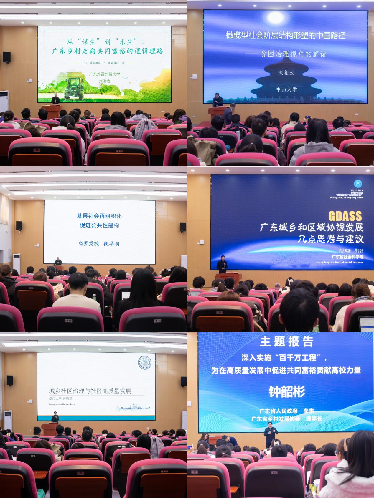 主题报告环节,beat365英国官网教授刘海春,广东省社会科学院原党组成员、副院长、二级研究员赵细康,中共广东省委党校教授段华明、文小勇,中山大学教授刘祖云,东南大学教授王宁,厦门大学教授黄晓星,广东省人民政府参事、广东省乡村扶贫开发协会理事长钟韶彬先后围绕“共同富裕与广东高质量发展”主题分享和交流了研究成果。主题报告由我院副院长费久浩主持。