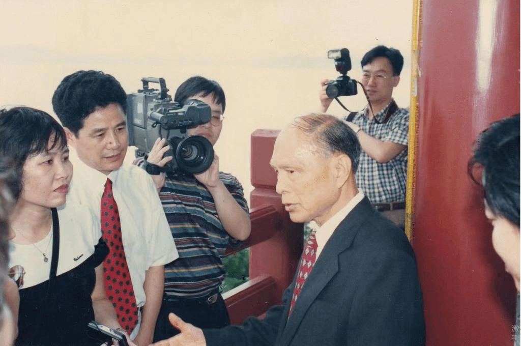 鲁大铮(左二)在番禺南沙采访霍英东先生