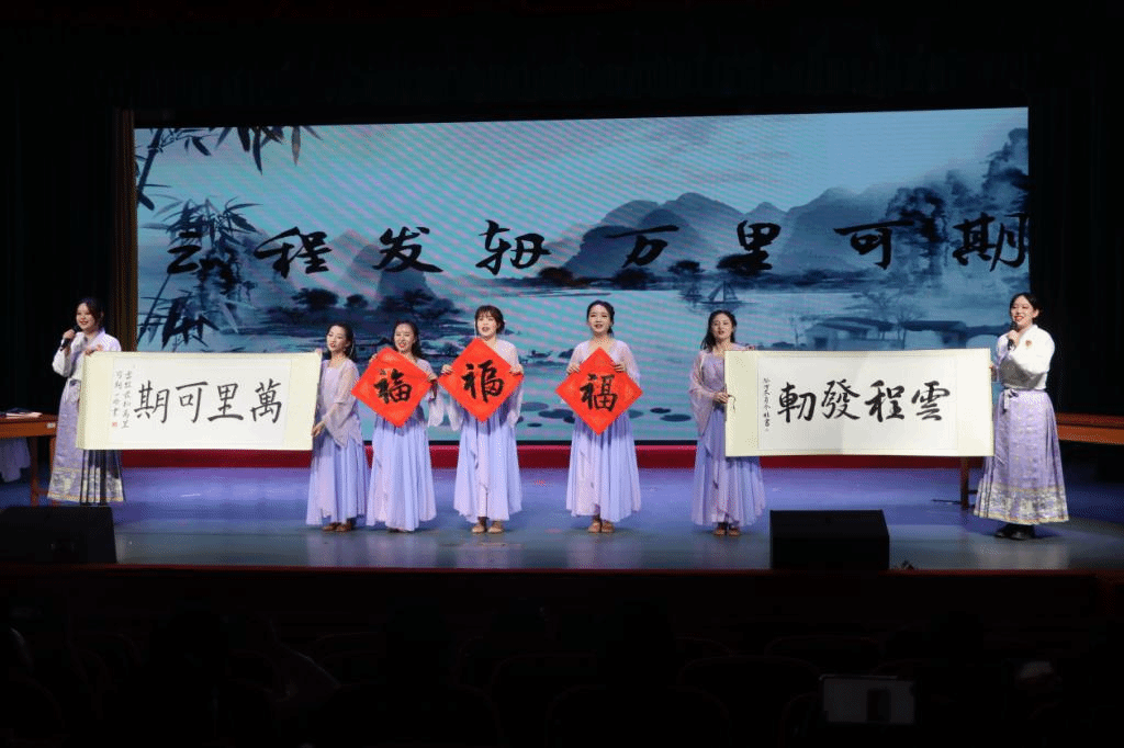 歌曲《是你》《这世界那么多人》《光·遇》声声入耳,借流行歌曲抒发以生为本之情;舞蹈《墨韵书香逾三朝》《当燃青春》动静结合、激情四射,展现中华文化的底蕴和澎湃青春的活力;合唱《不忘初心》《我的我的祖国》唱出心中赞歌,抒发与祖国同频、与时代共振之情;搏击操《拳拳出击》、小品《辅导员的一天》瞬间点燃全场的热情。