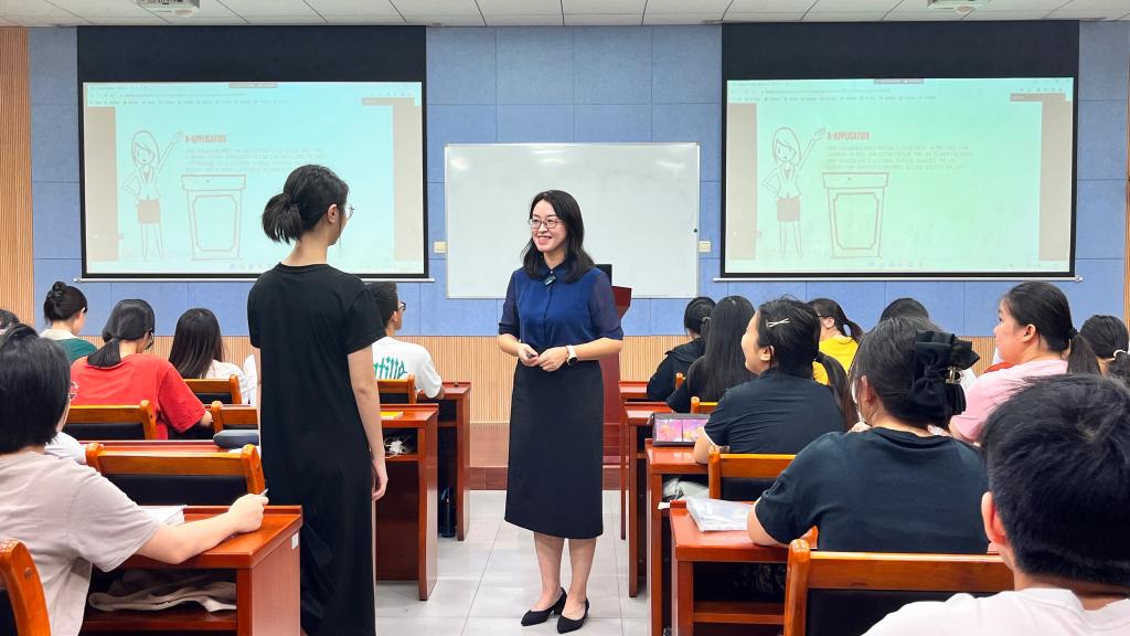 “‘爱生如子’是作为老师很重要的品质。”曾丹谈到。学期伊始,她会邀请学生们一起制定属于自己的“小目标”。当学生在学习中遇到困难产生懈怠时,她在课堂上结合语言学习给学生打气,让学生“亲其师”“信其道”。同学们提起曾老师,都笑着说她像妈妈一样体贴柔和,让学生都感到无比温暖。
