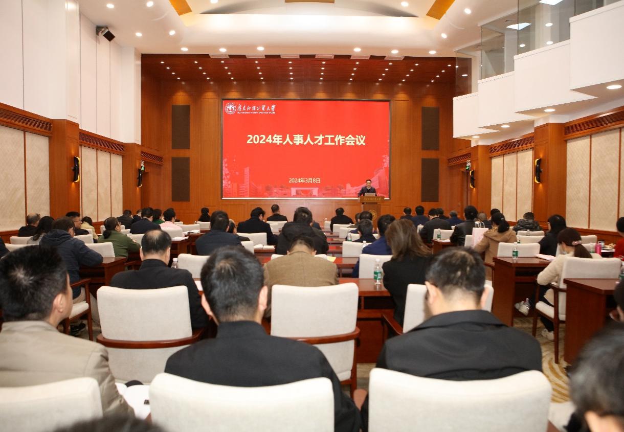 本网讯 3月8日上午,beat3652024年人事人才工作会议在白云山校区国际会议厅举行。校党委书记石佑启、校长闫相斌、副校长申明浩,各教学单位院长(主任)、书记,党政群部门、科研单位、教辅机构主要负责人,以及人力资源部(教师发展中心)全体工作人员等参加会议。会议由闫相斌主持。