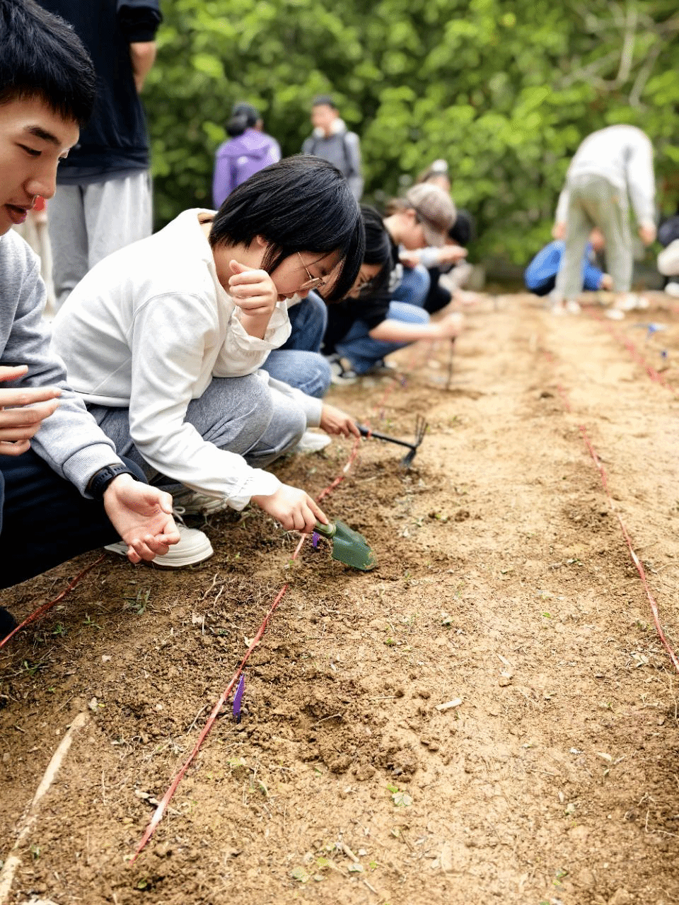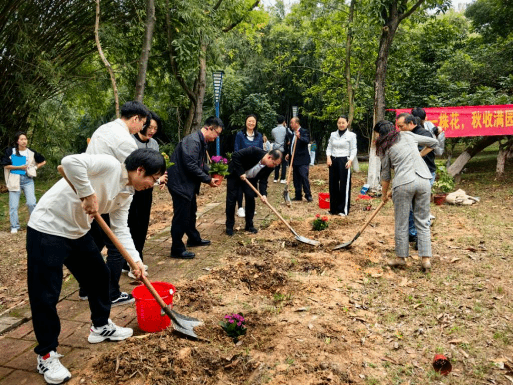 活动现场,师生们分组领取花苗和花种,热情高涨,干劲十足。除草翻地、施肥浇水,大家分工合作,有条不紊。活动参与者们脸上洋溢着喜悦和期待,小心翼翼地将一株株娇嫩的花苗、一粒粒微小的种子植入土中,每一个动作都承载着期望和祝福,期待经过自己的培育和养护,它们能够在阳光中蓬勃绽放,为凤凰山增添新生活力,为校园增添绿美红妆。
