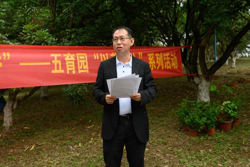 本网讯 3月15日,2024年度高校思想政治工作质量提升综合改革与精品建设项目“五育园——心理育人活动基地”揭牌仪式暨“以劳健心”系列活动在大学城校区凤凰山荔枝园举行。副校长申明浩,以及180多名学生等参加活动。