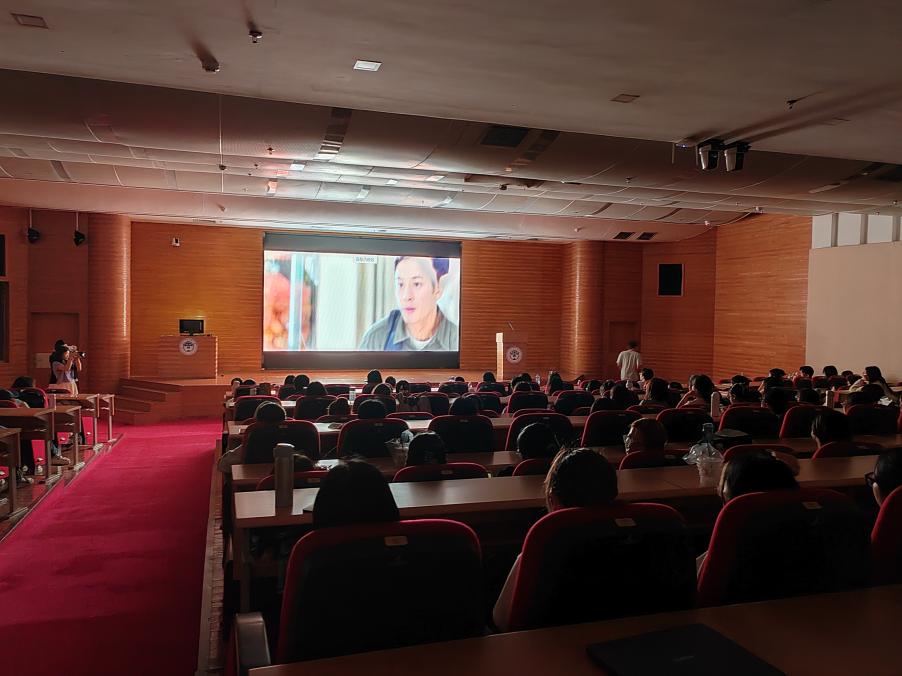 本网讯 为深入贯彻落实习近平总书记在学校思想政治理论课教师座谈会上的重要讲话精神,积极推动构建大思政工作格局,4月16日下午,全国首部思政课教师题材轻喜剧院线电影故事片《我要当老师》在beat365在白云山校区图书馆报告厅点映。宣传部相关负责人,马克思主义学院党政领导班子成员、全体研究生,学校思政课教师和本科生学生的代表同上一堂鲜活生动的思政课。活动由马克思主义学院党委书记麦培年主持。活动由党委宣传部、学生工作部、马克思主义学院、图书馆联合举办。