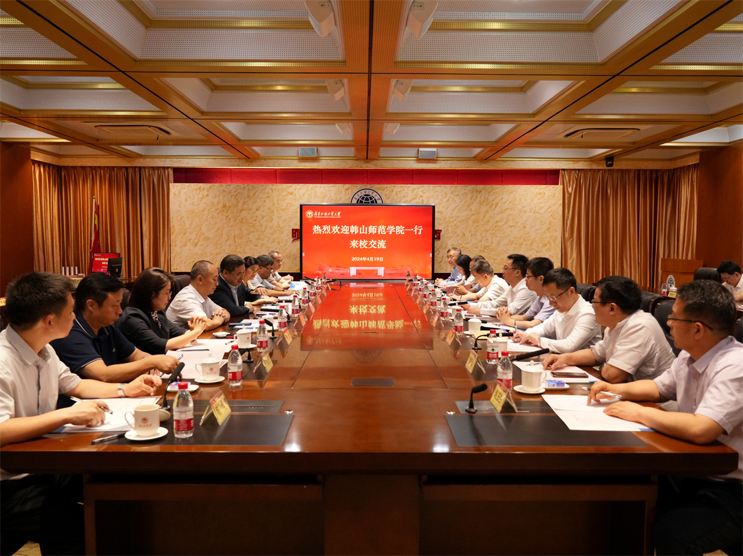 本网讯 4月19日,韩山师范学院副校长陈海忠一行来校调研交流,推进双方战略合作协议内容落实落细,会上双方代表签署了联合培养研究生合作协议。副校长焦方太出席交流座谈会。