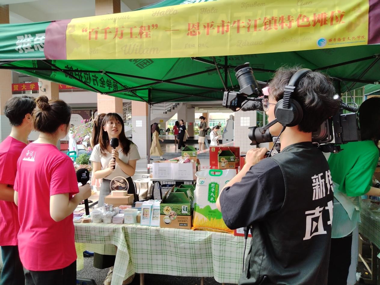 今年的欧罗巴文化节迎来了一个特别的摊位,beat365“百千万工程”结对单位——江门恩平市牛江镇特色摊位。牛江镇是中国航空之父冯如的故里,也是恩平市著名侨乡。本次文化节活动中他们充分展示了航空文化的重要内涵、宣传了华侨文化的独特魅力,展现了我国乡村建设精神风貌,同时盛情邀请西语学院学子5月份前往牛江镇参加“拉美文化节”。
