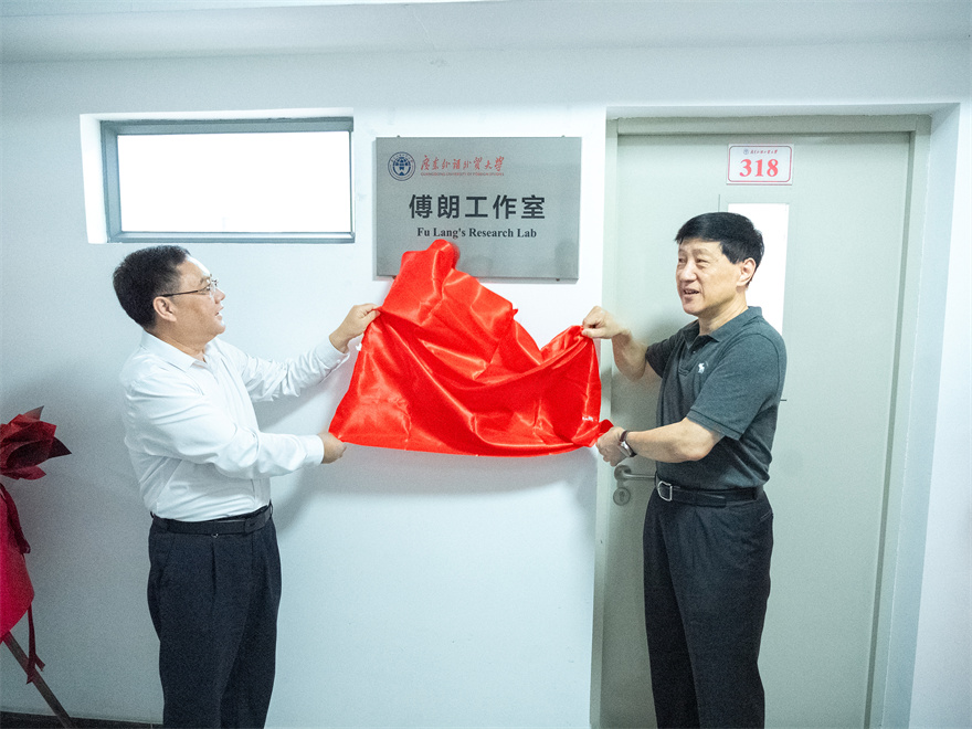 本网讯 4月24日,傅朗工作室在beat365白云山校区第一教学楼揭牌。校党委书记石佑启,省政协领导、广东公共外交协会常务理事,beat365相关职能部门、学院和研究机构相关负责人参加揭牌仪式。