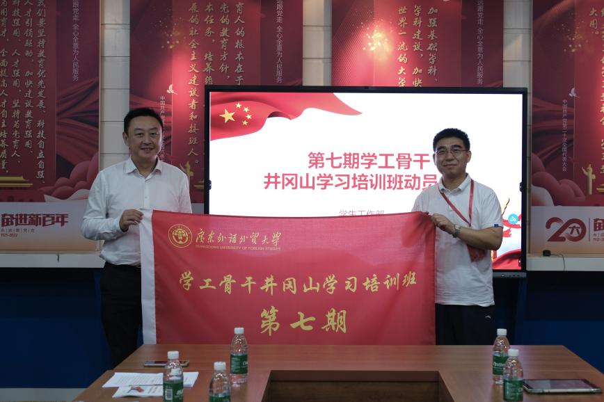 本网讯 4月18日至21日,学生工作部组织第七期学工骨干培训班,包括学工干部和学生骨干一行共53人,赴全国青少年井冈山革命传统教育基地开展学习培训活动。校党委副书记唐锐为培训班授旗并动员讲话。