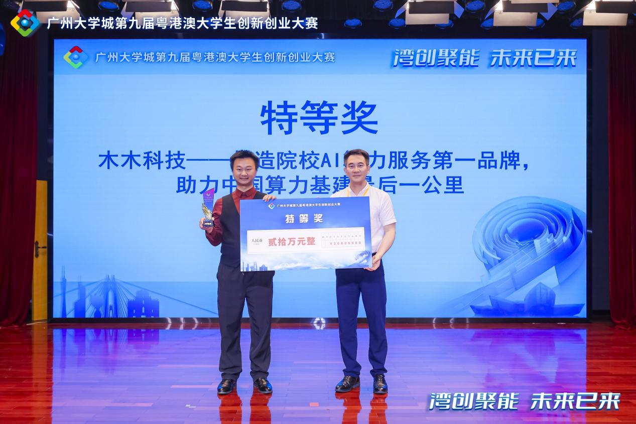 在决赛环节中,经过精彩的展示答辩、严格的评选打分,“木木科技”斩获新兴产业赛企业组一等奖,成功获取晋级特等奖的名额。随后,与来自粤港澳大湾区、省外知名高校的另外3支创新创业团队共同角逐这一象征着本次赛事最高荣誉的奖项。最终,“木木科技——打造院校AI算力服务第一品牌,助力中国算力基建最后一公里”项目凭借其对核心技术的精准掌握和对市场需求的敏锐洞察,成功拉动市场新需求,在细分领域提升了产品附加值,塑造了发展新优势,赢得了评委们的一致认可。本次赛事还获中国青年报、中国新闻网、广州日报等几十家媒体平台的关注和报道。
