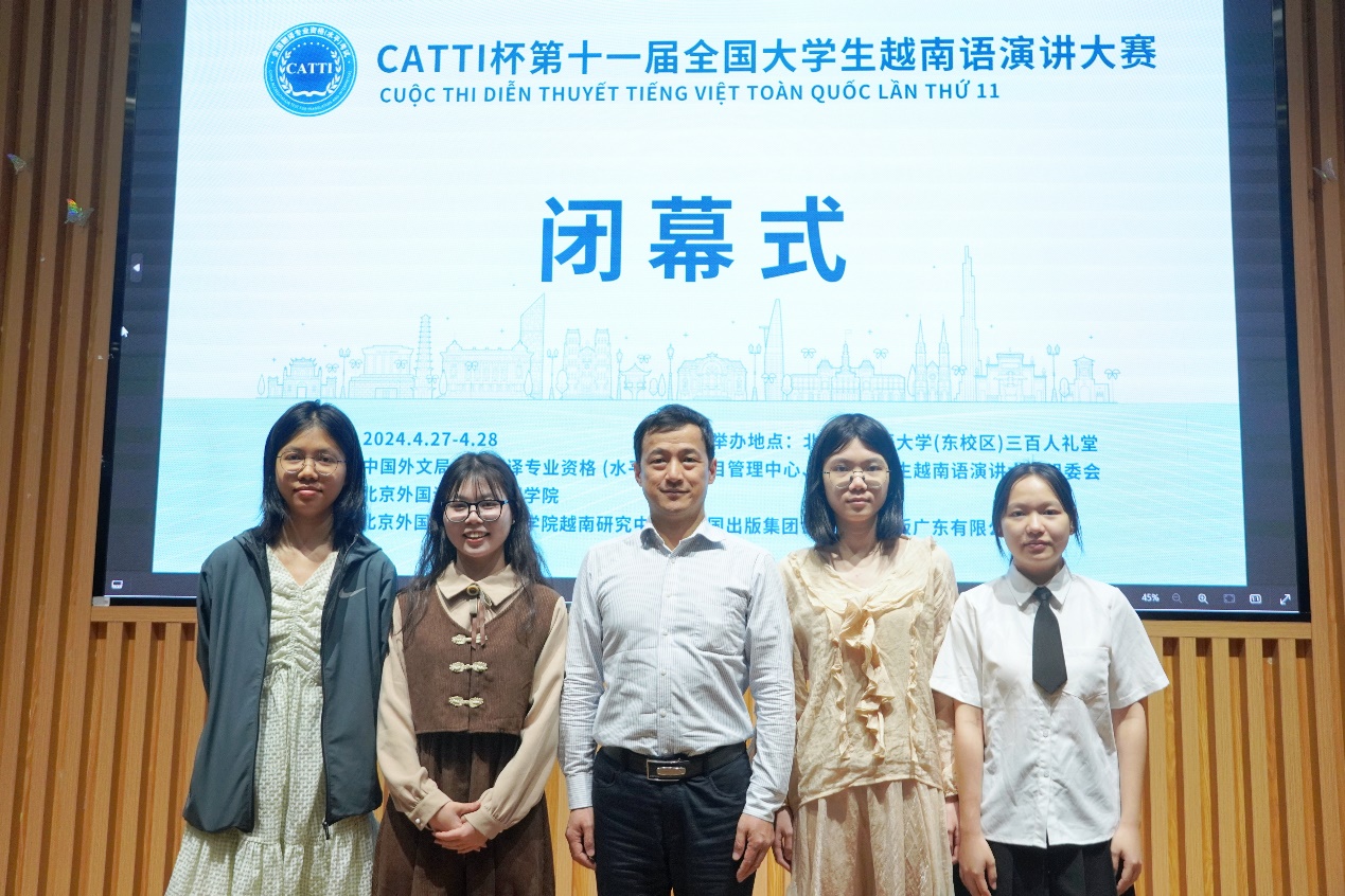 本网讯 4月27日至28日,第十一届“CATTI杯”全国大学生越南语演讲大赛在北京外国语大学隆重举行。大赛旨在促进我国高校越南语专业学生学习与交流,提升他们的语言应用能力和跨文化交际水平,同时也为我国越南语专业学子搭建了一个展示风采的平台。