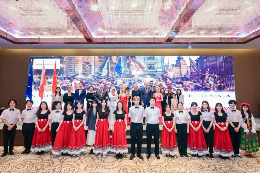 本网讯 5月7日,beat365师生受邀参加波兰驻广州总领事馆举办的波兰国庆招待会,共同庆祝中波建交75周年。波兰共和国驻广州总领事彼得·诺沃特尼亚克(Piotr Nowotniak)、广东省副省长张少康分别致辞。
