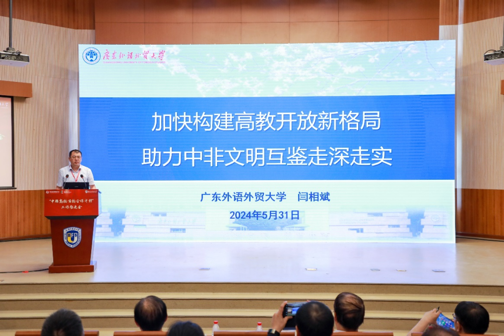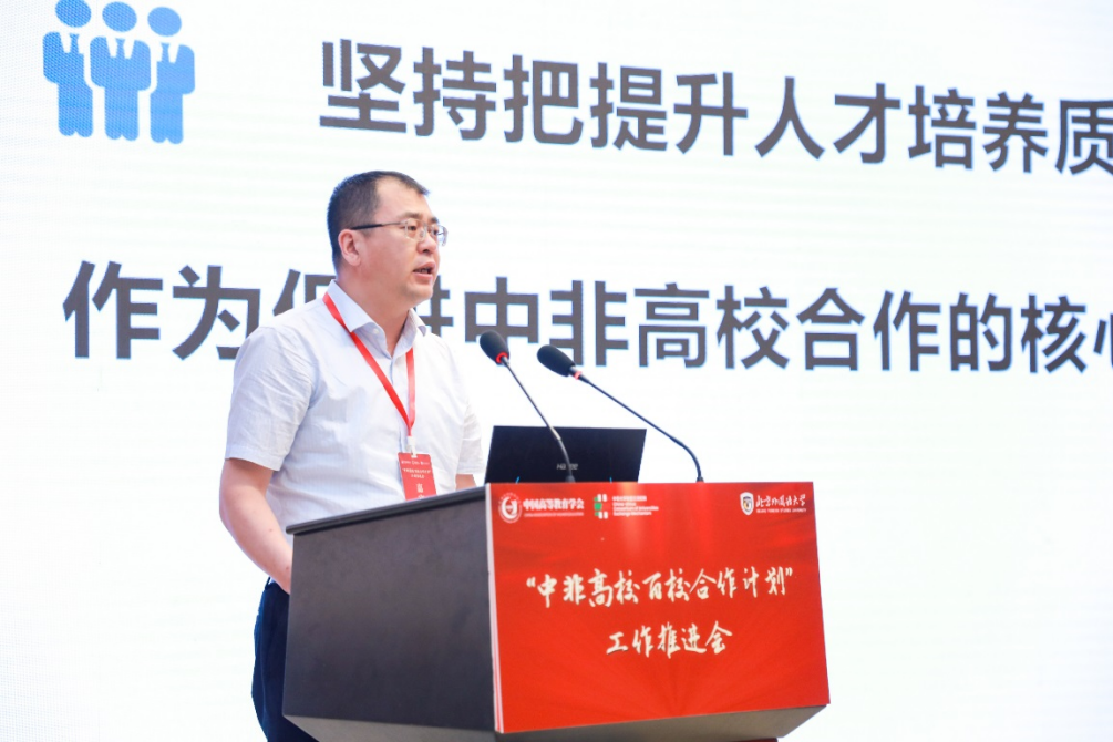 在高校代表发言环节,闫相斌作题为“加快构建高教开放新格局, 助力中非文明互鉴走深走实”的报告,从人才培养模式、教研科研成果、产学研一体化机制和国际中文教育四个方面总结了beat365对非合作的主要模式和成果,展望了beat365与非洲国家在教育领域的合作前景。