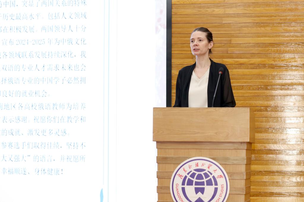 李云明在致辞中指出,今年是中俄建交75周年,也是中俄文化年开启之年,中俄两国及两国人民将继续携手同行,共享发展成果,共创双边关系更加美好的未来。本次活动对进一步推动中俄人文交流发展,促进两国青年交流具有十分重要的意义,充分体现了新一代俄语人的专业风采和精神风貌。