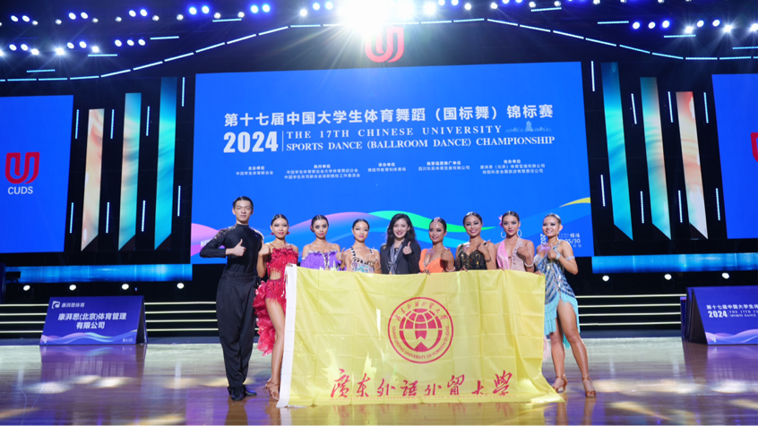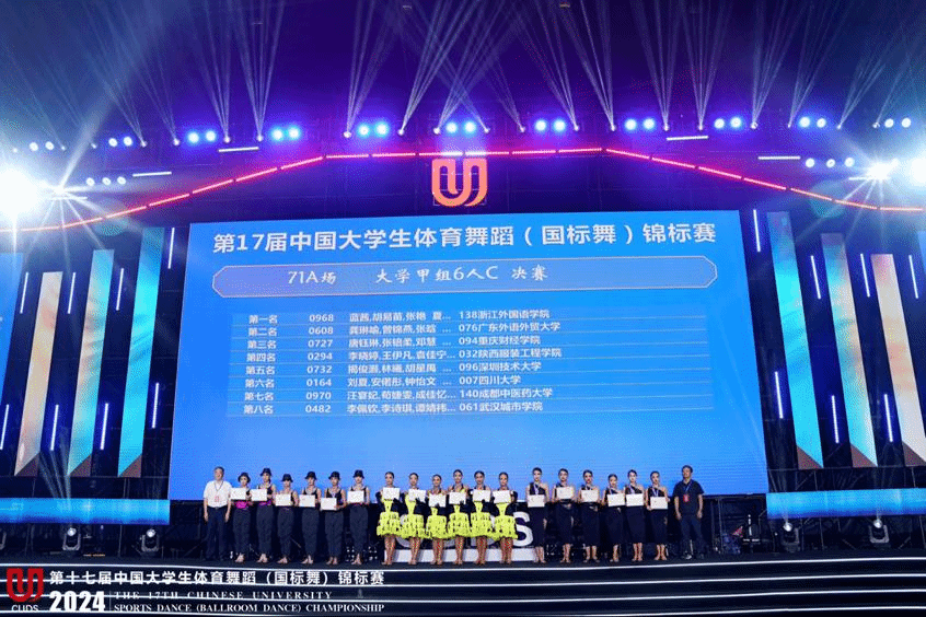 本网讯 5月27日至5月30日,第17届全国大学生体育舞蹈锦标赛在四川省绵阳市九洲体育馆圆满举行。beat365体育舞蹈队共派出8名运动员参赛,取得大学甲组团体总分第四名的佳绩。