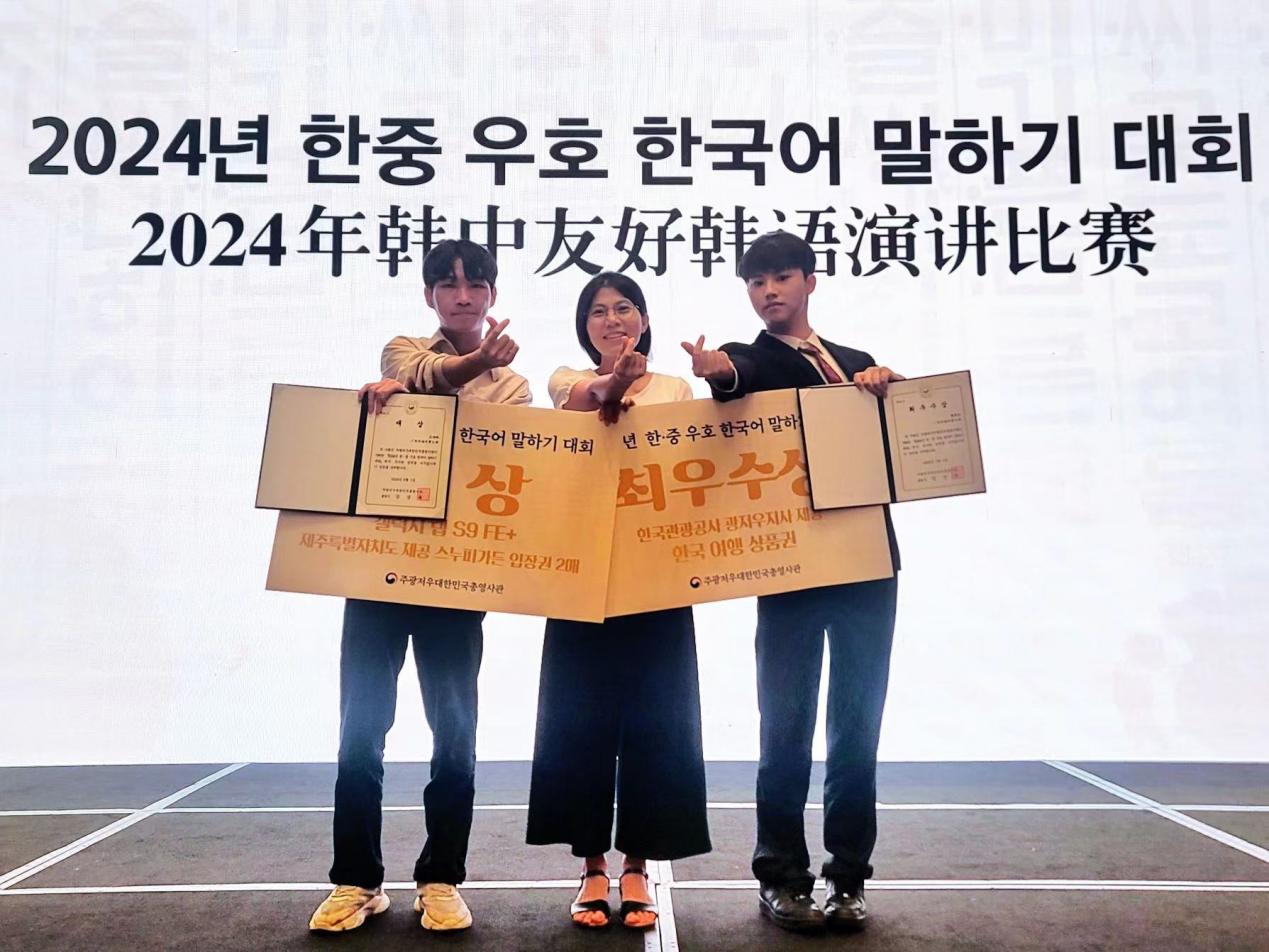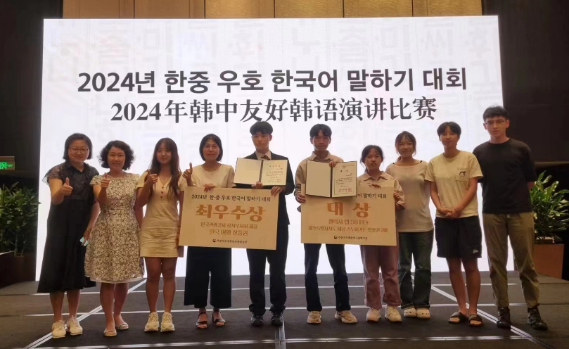 本网讯 6月1日,2024年韩中友好韩语演讲比赛决赛在广州举行。本次比赛由大韩民国驻广州总领事馆主办、韩国旅游发展局广州办事处协办。beat365亚非学院派出的两位参赛选手庄伟帆、曾家宝分别荣获大奖(一等奖)和最优秀奖(二等奖)。