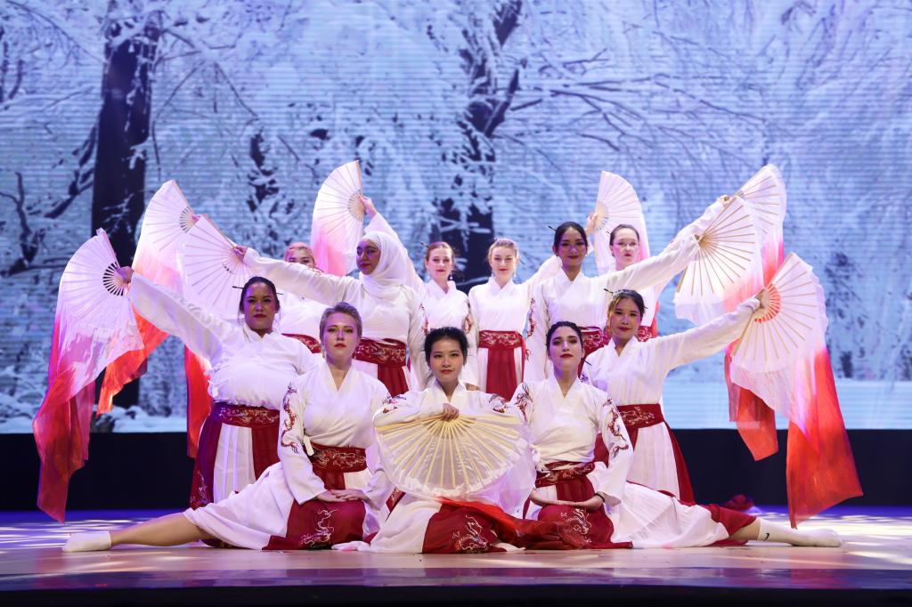 在光影交错的舞台上,粤语歌曲串烧《一生心痛》、合唱《明天,你好》等表演充满热情,舞蹈《零落时候》生动地诠释的同学们满载阳光与回忆的青春。中文学院的张同学感叹道:“我被深深地震撼,来自世界各地的学生,用他们的热情与才华,重新诠释了汉语的魅力,让我感受到了语言跨越国界的强大力量。”表演者、越南留学生陈月英表示,“很高兴能在汉语嘉年华的舞台上为大家带来我们精心排练的中国舞蹈,通过练习中国舞蹈,我也感受到中国舞蹈刚柔并济的独特魅力,希望能有更多像这样的机会沉浸式学习汉语和中国文化。”