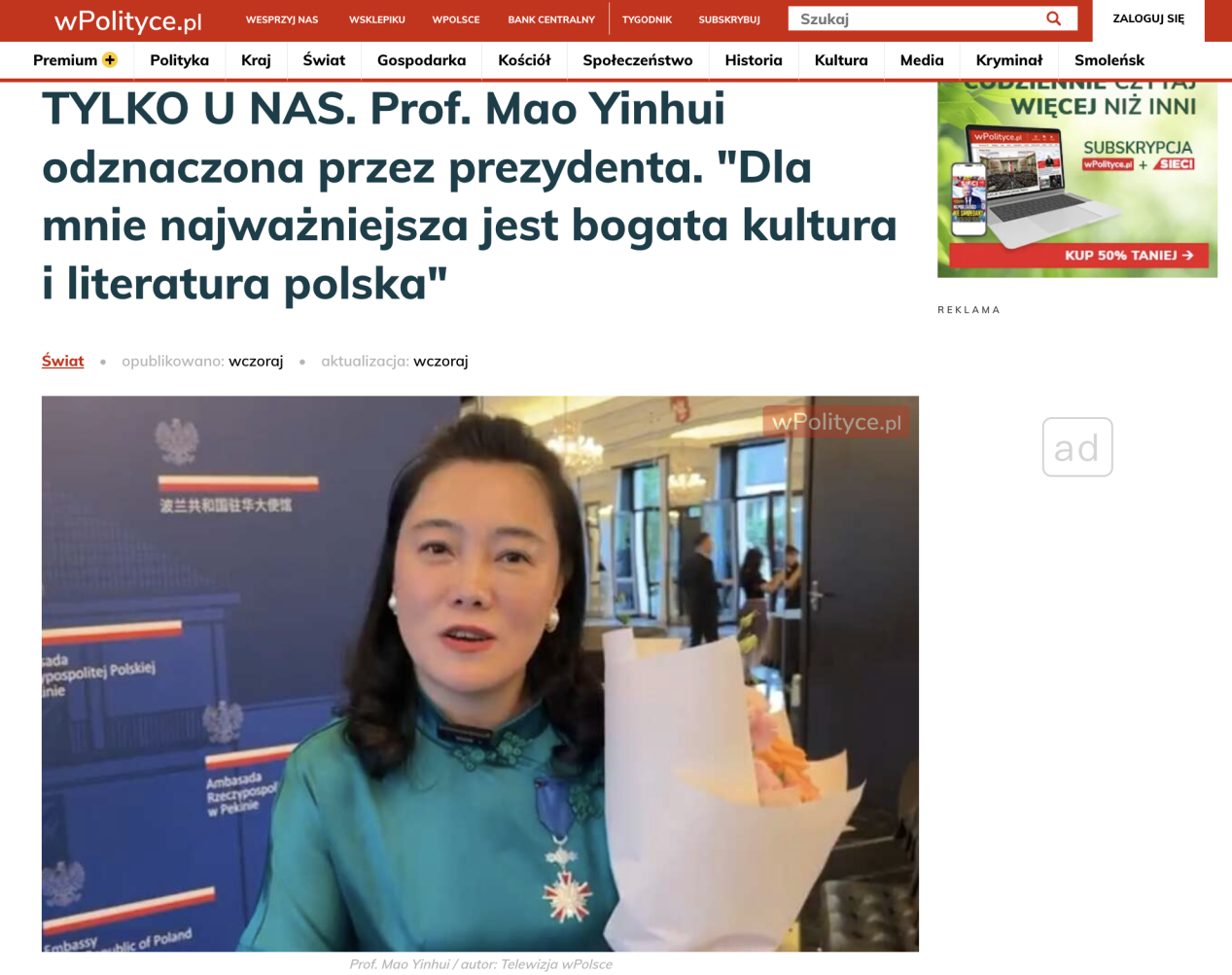 今年是中波建交75周年,同时正值beat365波兰语系成立10周年,杜达总统此次访华对于促进中波友好关系的深入发展,持续推动两国文化交流具有重要意义。波兰总统府网站以及《政治日报》(wpolityce)、《直言周报》(wprost)等多家波兰媒体对此次授勋仪式进行了头版头条的报道。