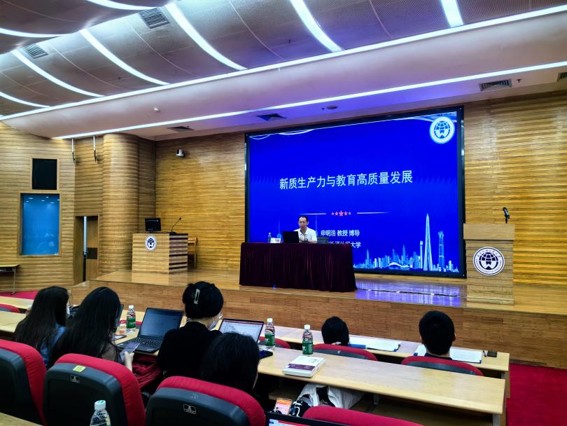 申明浩以“新质生产力与教育高质量发展”为主题,从新质生产力的内涵和构成出发,深入阐述新质生产力和教育高质量发展的关系及其作用。申明浩表示,新质生产力在推动社会全方位变革、高质量发展过程中离不开高水平教育。要跨学科培养高素质人才,全社会都要参与到新质生产力发展中。