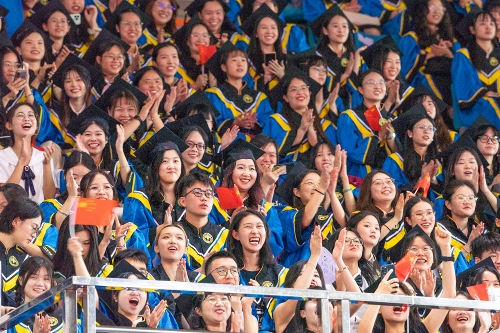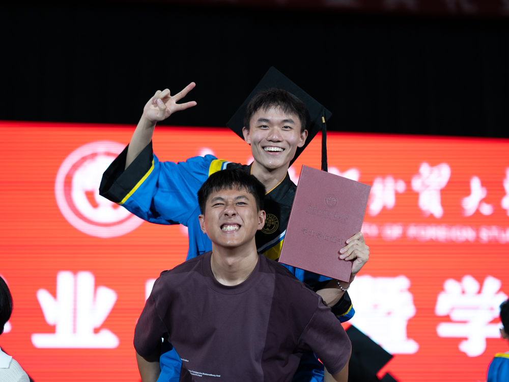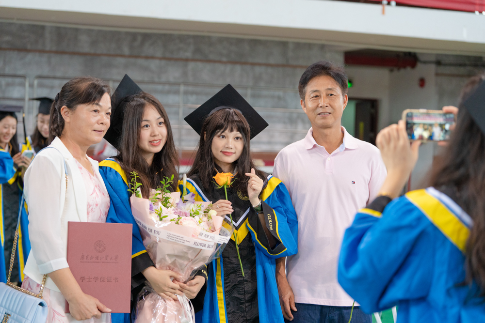金融学院本科毕业生陈乐感恩大学四年老师的谆谆教诲,希望未来继续以乘风破浪的勇气,勇敢前行,应对挑战,收获人生的丰盈。法学院本科毕业生王俐程表示,学校国际化的人才培养模式塑造了学生广阔的眼界和视野,希望大家永葆初心,祝福母校越来越好。学生家长游女士在观看毕业典礼后激动地表示,感谢学校带来的仪式感满满的毕业典礼,她为女儿的成长感到自豪,希望女儿运用所学知识主动承担社会责任,为国家发展贡献青春力量。