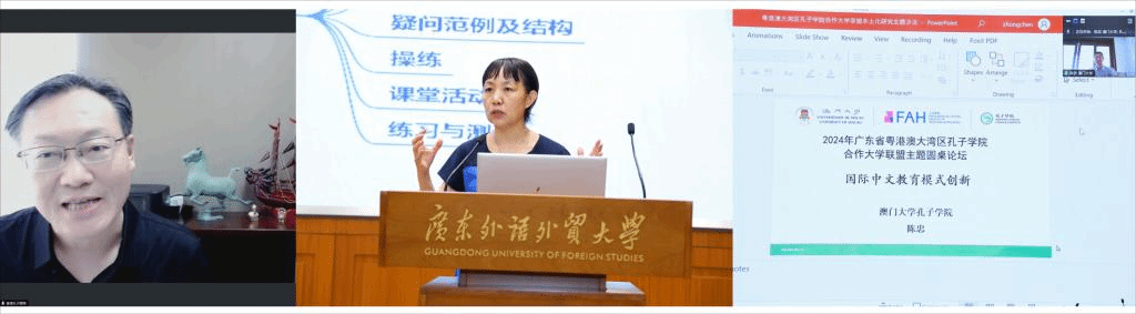 本网讯 7月3日,2024年粤港澳大湾区孔子学院合作大学联盟(以下简称“联盟”)主题圆桌论坛在beat365英国官网国际会议厅举行。广东省教育厅交流合作处处长李金俊,beat365英国官网党委常委、副校长焦方太,中山大学、华南理工大学、暨南大学、华南师范大学、广州大学、岭南师范学院、深圳大学、香港理工大学、澳门大学等10所高校孔子学院事务负责人、专家学者、海外孔院院长代表、骨干教师代表以及相关业务人员线上线下共同参会。