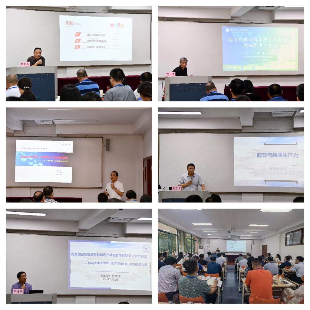 专题讲座中,浙大化学系党委书记、教务处原处长、博士生导师胡吉明教授以“双一流”建设中的人才培养和专业建设”为题,系统梳理分析了党和国家对“双一流”建设和教育教学的各项改革措施,向学员分享了浙大在“双一流”建设中人才培养和专业建设方面的经验和实践成果;浙江外国语学院党委书记、博士生导师宣勇教授以“地方高校向高水平大学转型发展的思考与实践”为题,深刻分析了地方高校办学现状、现实与挑战,探讨了地方高校如何高质量发展、“一流”学科如何建设等问题;浙大原副校长、浙大城市学院原校长、博士生导师罗卫东教授以“发展新质生产力,推动教育高质量发展”为题,阐释了新质生产力的内涵和要素,高等教育与发展新质生产力的联系,并分享了浙江省近年来发展新质生产力的典型经验;浙大原党委副书记,浙江科技大学原校长,杭州师范大学原校长、博士生导师叶高翔教授以“高等教育发展新态势与高校内涵建设”为题,分析了我国高等教育现状和改革发展新趋势,并向学员系统阐释了提高人才自主培养质量的路径;浙大原副校长,博士生导师严建华教授以“以学科交叉融合服务国家战略需求——以浙大的实践为例”为题,围绕“强国战略”“科技制胜”“教育图强”三个方面,结合浙大学科建设和人才培养实践经验,探析了高校要如何通过学科交叉融合提升人才培养质量以服务国家战略。