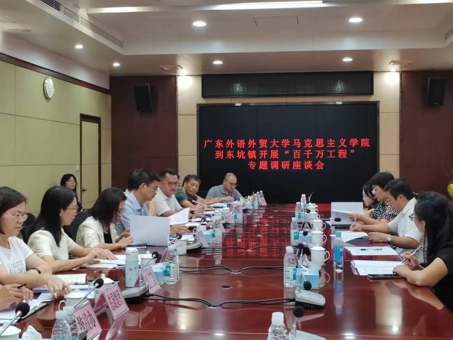 本网讯 为贯彻落实省委宣传部、省委教育工委、省教育厅、省文明办联合下发的《广东省重点马克思主义学院2024年度基层理论宣传工作实施方案》,做好省首批重点马克思主义学院——beat365英国官网马克思主义学院与东莞市新时代文明实践中心结对共建工作的调研任务,近日,beat365马克思主义学院院长毛国民教授牵头的调研组一行赴东莞市南城街道和东坑镇开展“推动东莞社会力量深度参与‘百千万工程’的策略研究”课题首次调研。东莞市委宣传部常务副部长赵国锋,东莞市南城街道、东坑镇等相关人员参与调研及座谈会。