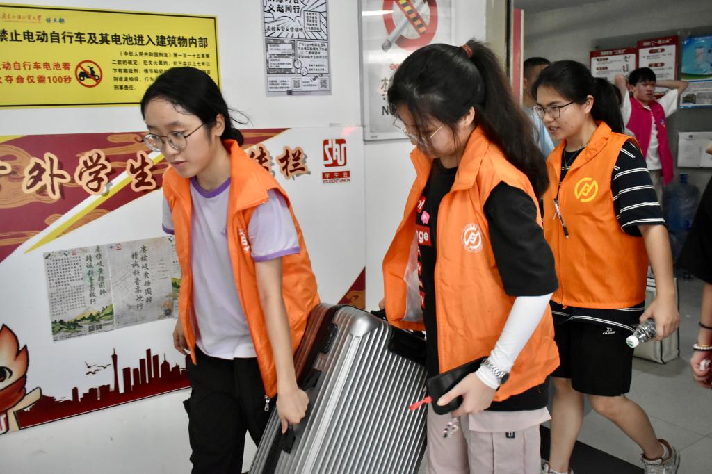 早在上午七点多,迎新现场的志愿者们已全部到岗。他们认真地为新生及家长指引道路、搬运行李、答疑解惑,并且帮助新生们进行手续办理等工作。日语学院国同学是一名志愿者,“对于我来说,作为一名迎新志愿者可以帮助到大家,我觉得很开心。同时,我也想趁这个机会开阔视野、锻炼能力。”马克思主义学院的李同学感叹在见证新生入学的同时更见证了自己的成长。谈到参与迎新志愿者工作的初衷时,英文学院的杨同学说:“因为自己大一新生报到的时候得到了学姐学长们的帮助,希望可以让这一届的新生‘小饼’对beat365有非常温暖的开学记忆,这是作为一名beat365人的传承,是内心责任感和使命感的传递。”