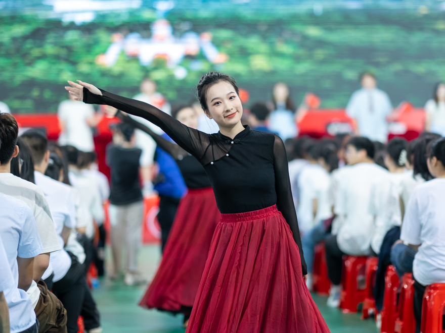 开学典礼前,快闪表演拉开精彩序幕。《lemon tree》以轻松的曲调渲染出愉悦的气氛;一曲节奏明快的《少年》将气氛推向高潮;一首《我和我的祖国》悠扬动听,勾起全场浓浓的爱国情怀,为开学典礼添上灿烂一笔。
