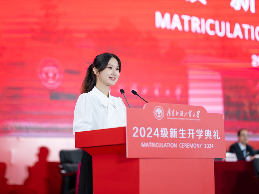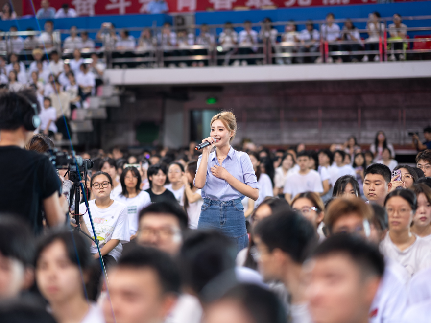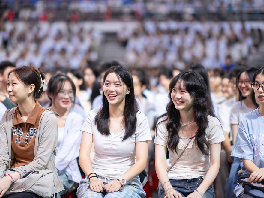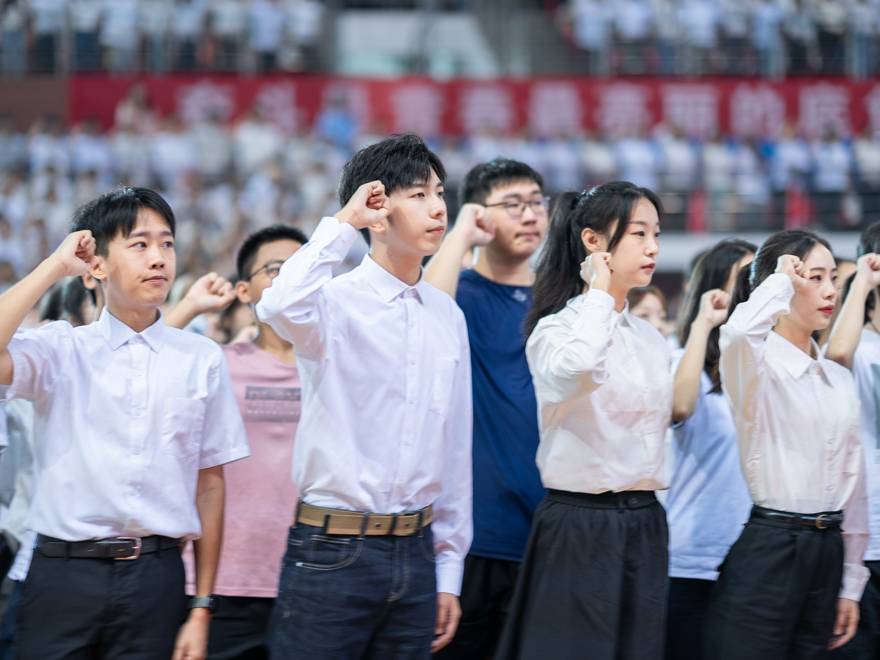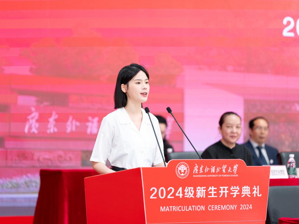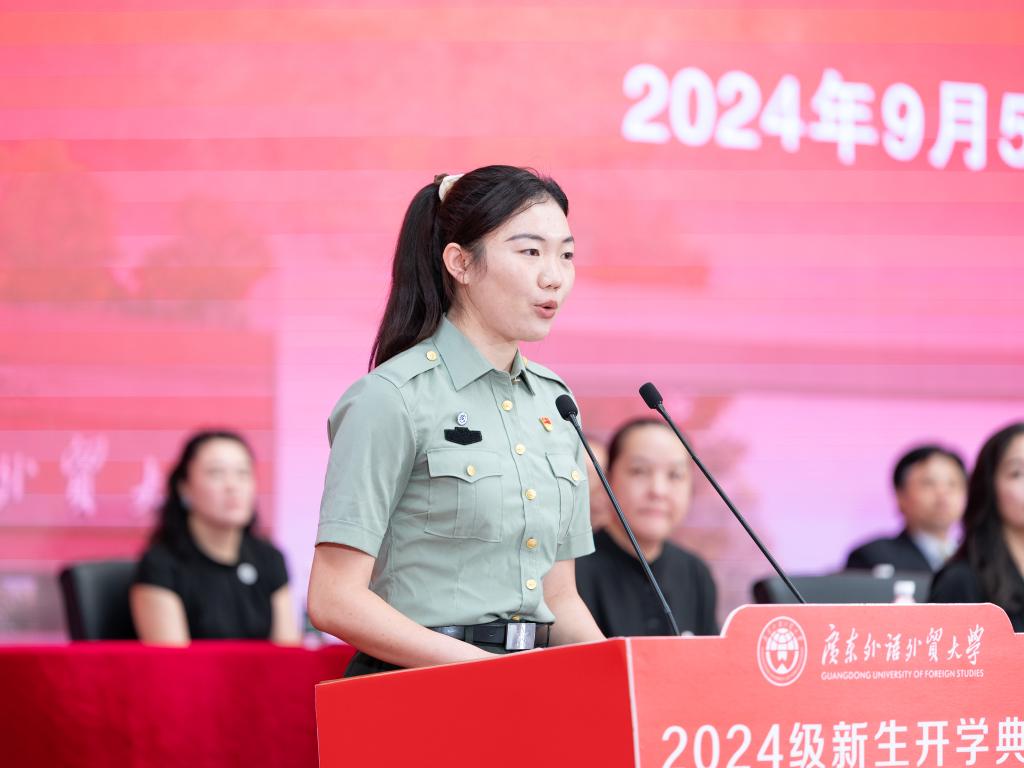 老生代表、英语语言文化学院2021级本科生陈慧珊向新生分享了她参军入伍、卫国戍边,从“迷彩绿”到“志愿红”转变的经历。她表示,beat365青年应当将个人的成长成才与国家的繁荣发展紧密结合,努力成长为心怀世界、追求卓越、担当奉献的beat365人,书写自己多彩的青春篇章。